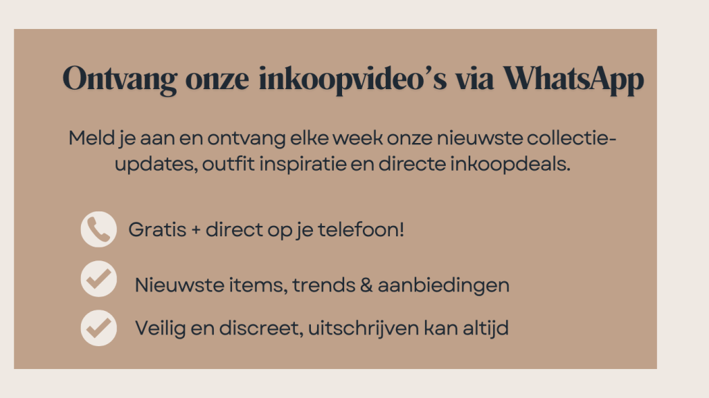 Welkom bij Fashion Trends Ontvang onze video’s via WhatsApp Stuur ons een WhatsApp voor meer informatie